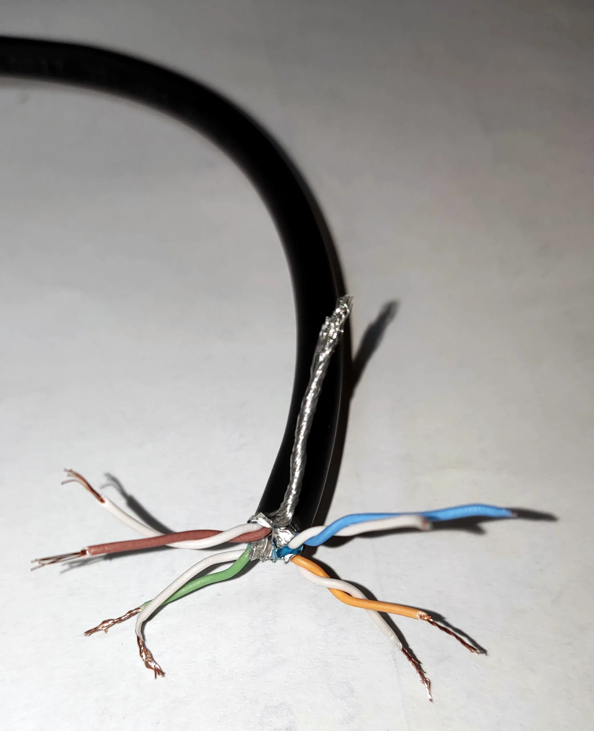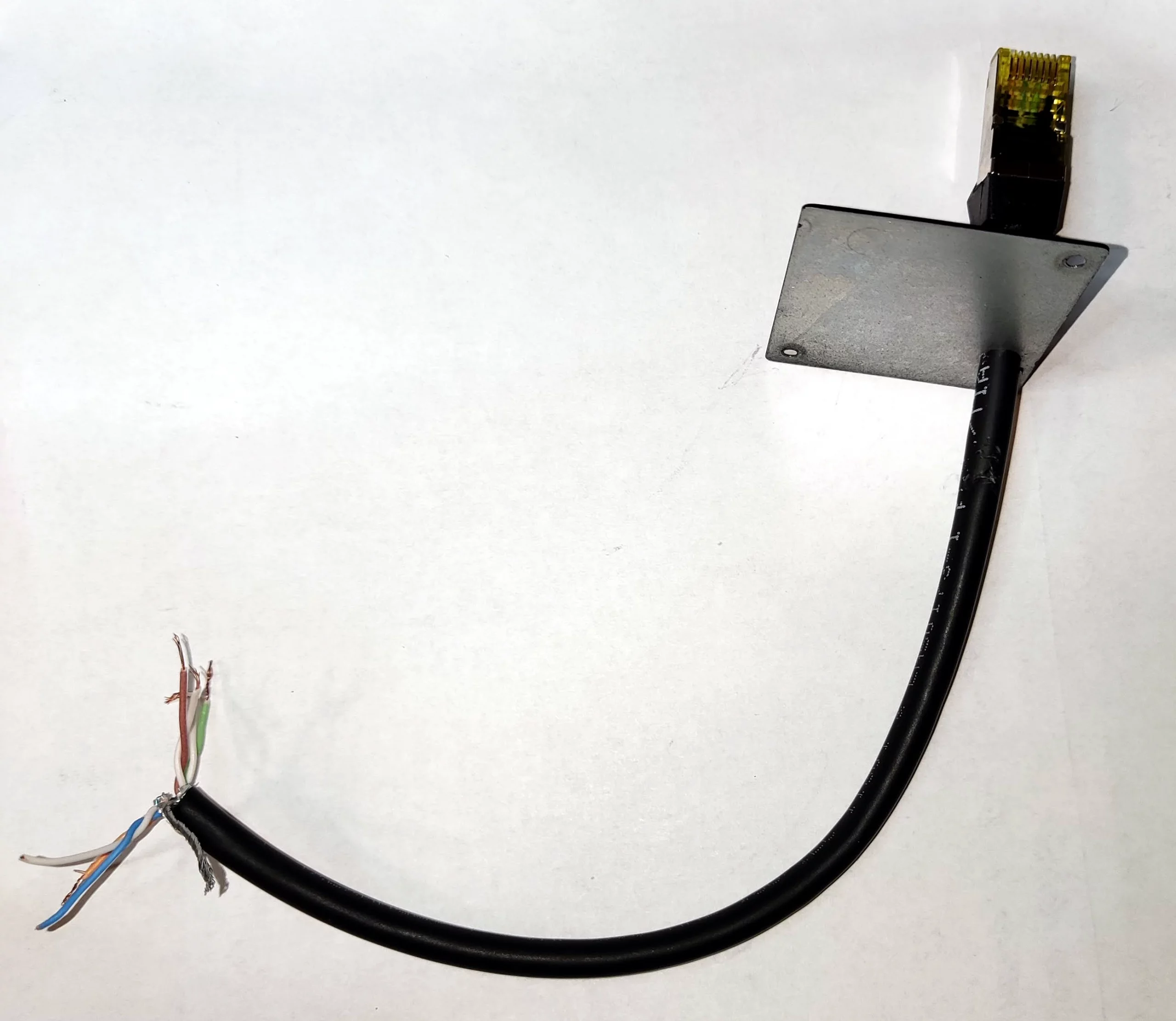 Pour convertir cette camera en une camera PoE 12V, on coupe le câble existant, pour le remplacer par un câble Ethernet. La longueur du câble est a dimensionner selon les besoin.