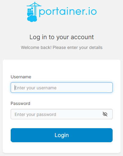 On part ici d’une installation de Portainer déjà opérationnelle. D’abord, on se connecte à l’interface de gestion.