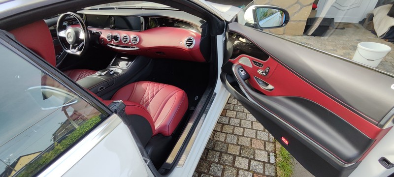 Description : Exceptionnelle Mercedes S500 Coupé V8 Coupé (Châssis C217) proposée dans une configuration rare et très recherchée : extérieur Blanc Nacré associé à un intérieur intégral en cuir Rouge Bengal et inserts en laque noire. Un contraste sport-luxe saisissant.